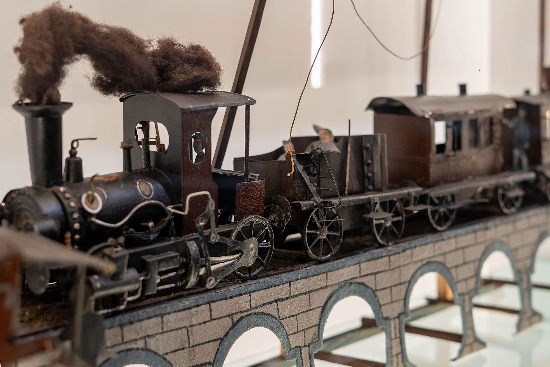 Δημιουργήθηκε με την εθελοντική εργασία κάποιων μελών του Συλλόγου συνταξιούχων σιδηροδρομικών και εθελοντών, με την χρηματοδότηση της ΑΜΚΕ ΚΥΚΛΩΨ, του μεγάλου ευεργέτη της Δράμας κυρίου Άρη Θεοδωρίδη και την χορηγία του ΟΣΕ, διότι σε αυτόν ανήκουν τα εκθέματα και το Μουσειακό Τροχαίο Υλικό που βρίσκεται στο Μηχανοστάσιο.